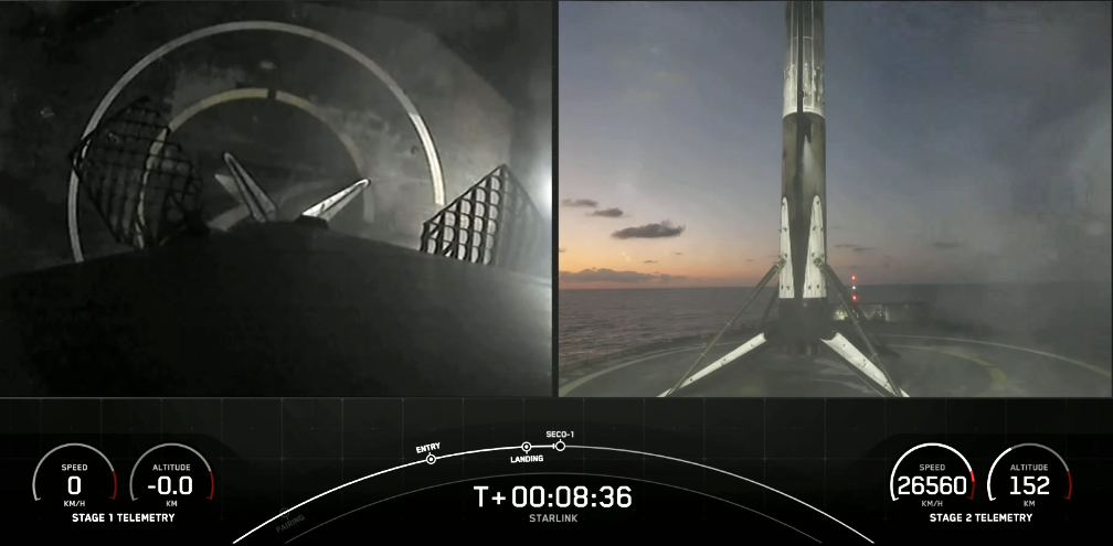 Following stage separation, Falcon 9’s first stage successfully landed on the A Shortfall of Gravitas droneship stationed in the Atlantic Ocean.