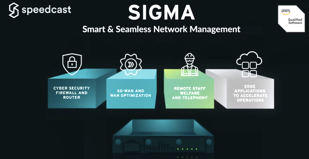 An AWS-qualified platform, SIGMA’s new architecture spotlights Speedcast’s innovative approach to network management. It removes complexity and cost for operations and gives users complete transparency and control of their networks. Built-in traffic and policy management provides users with real-time bandwidth monitoring and the ability to control and prioritize data usage for critical applications over crew welfare or other remote site requirements.