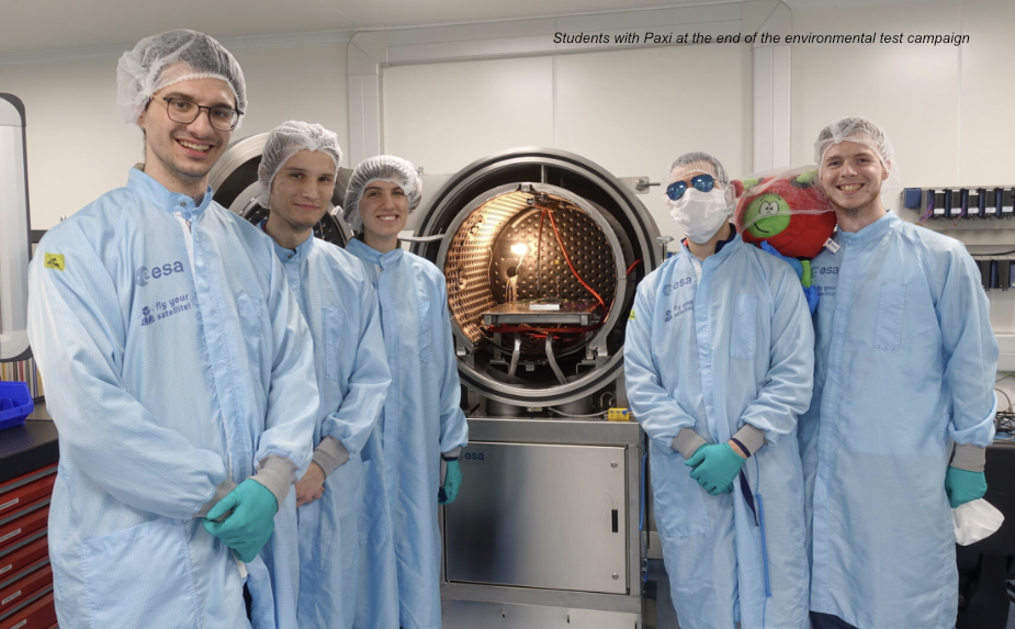 Five students from the AcubeSAT team, participating in the 3rd edition of ESA’s Fly Your Satellite! program, have travelled from their home base in Thessaloniki, Greece, to the CubeSat Support Facility (CSF), in ESA ESEC, Belgium, to conduct environmental testing on their On-Board Computer/Attitude Determination & Control System (OBC-ADCS) board.