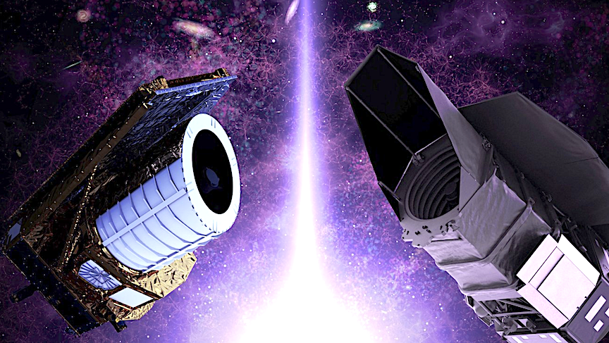 Euclid will also study dark energy by mapping the presence of another mysterious cosmic phenomenon called dark matter. Five times more common in the universe than regular matter, dark matter is distributed throughout the cosmos. While dark matter does not absorb or reflect light, scientists can detect it via its gravitational influence on “regular” matter like stars and galaxies, and its distribution throughout the cosmos is affected by dark energy’s outward push.