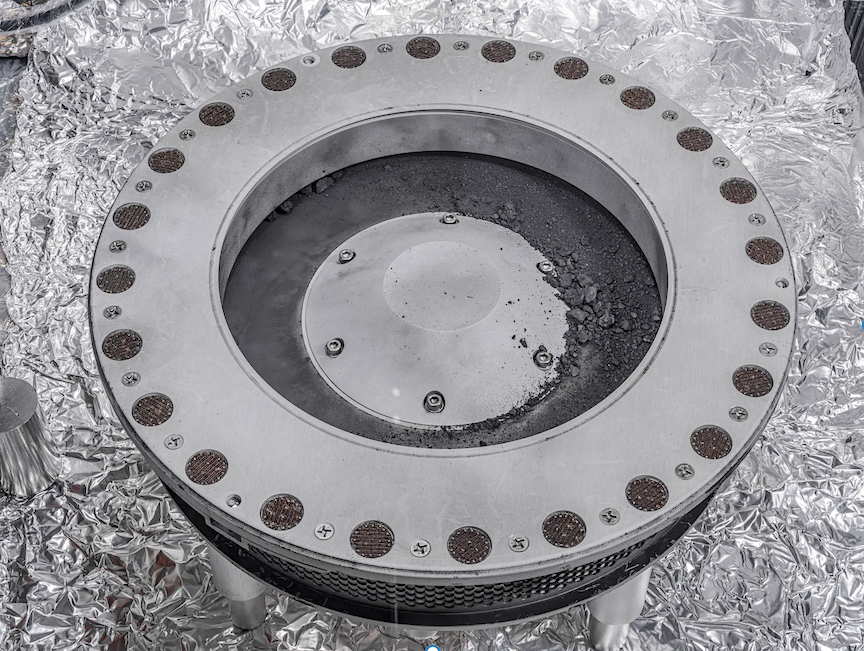 The goal of the OSIRIS-REx sample collection was 60 grams of asteroid material. Curation experts at NASA Johnson, working in new clean rooms built especially for the mission, have spent 10 days so far carefully disassembling the sample return hardware to obtain a glimpse at the bulk sample within. When the science canister lid was first opened, scientists discovered bonus asteroid material covering the outside of the collector head, canister lid, and base. There was so much extra material it slowed down the careful process of collecting and containing the primary sample.