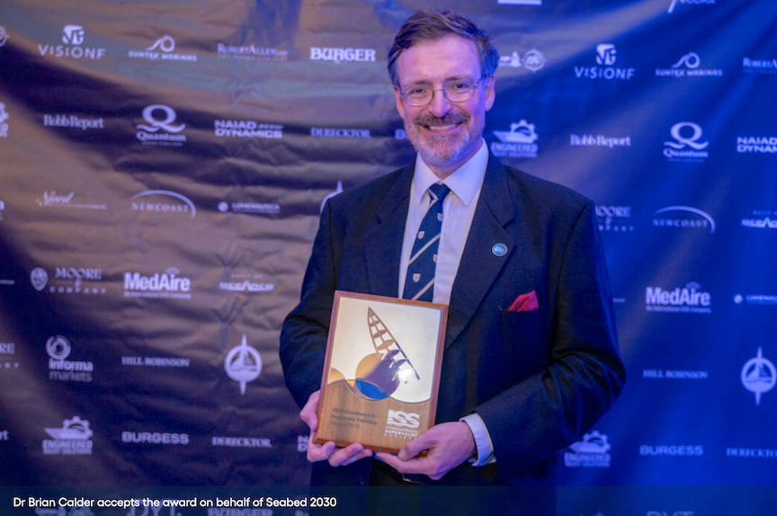 Dr. Brian Calder of the Center for Coastal & Ocean Mapping at the University of New Hampshire accepted the award on behalf of Seabed 2030. As the lead designer of the next generation of crowd-sourced bathymetry data loggers, Dr. Calder has supported the International Hydrographic Organization’s (IHO) Crowdsourced Bathymetry Initiative since its inception, which is pivotal to Seabed 2030’s success in delivering the GEBCO map.