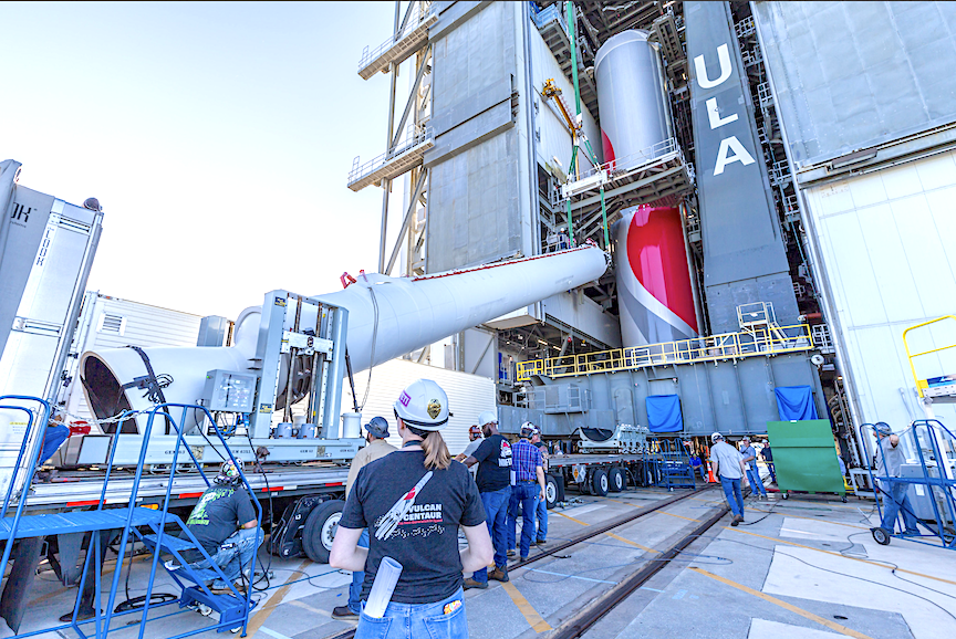 Integrated testing and a complete electrical checkout of the combined rocket and payload will be completed in the coming days while final readiness reviews and closeout activities are performed in preparation for rollout of the rocket on its Vulcan Launch Platform (VLP) to SLC-41 for the countdown and liftoff. For this inaugural flight, the rocket is flying in the Vulcan VC2S variant. The two-stage rocket uses two BE-4 methane-fueled engines on the booster stage, two GEM 63XL solid rocket boosters, dual RL10C-1-1A engines on the Centaur V upper stage and encapsulates the spacecraft in the standard-sized Out-of-Autoclave (OoA) payload fairing.