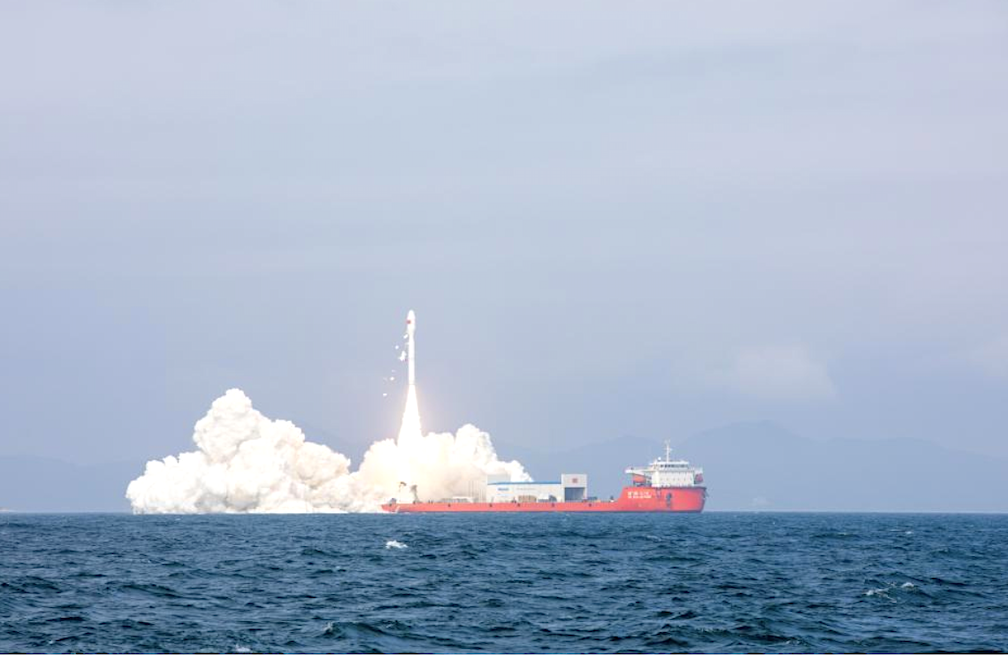 The rocket blasted off at 11:06 a.m. (Beijing Time) from waters off the coast of Yangjiang, a city in south China’s Guangdong Province. The Taiyuan Satellite Launch Center conducted the offshore launch.