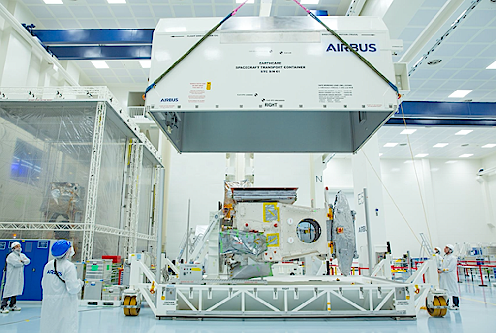 The Airbus-built EarthCARE (Earth Clouds, Aerosols and Radiation Explorer) spacecraft has left Munich, Germany, and is now on its way aboard an aircraft to its launch site in Vandenberg, California. EarthCARE is planned to be launched in May on a Falcon 9 rocket.