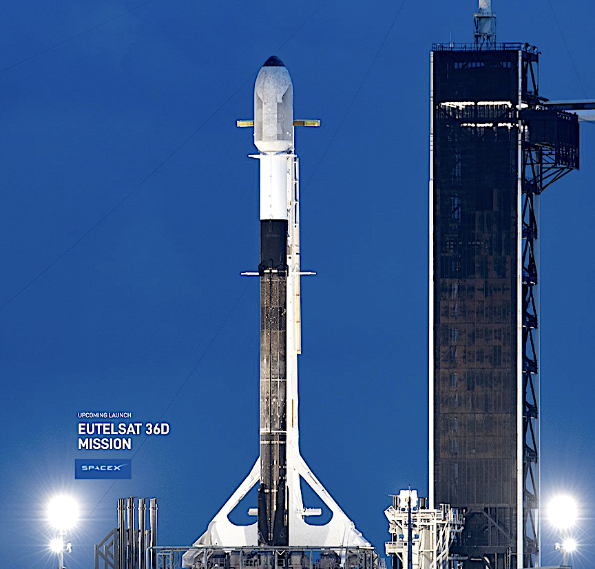 SpaceX is targeting Saturday, March 30 for Falcon 9’s launch of the EUTELSAT 36D mission to a geosynchronous transfer orbit from Launch Complex 39A (LC-39A) at the Kennedy Space Center in Florida. The three hour 58 minute launch window opens at 5:52 p.m. ET. If needed, a backup opportunity is available Sunday, March 31 with the same window.