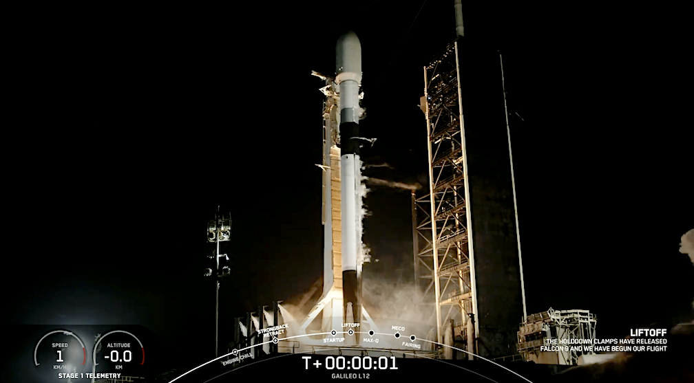 SpaceX’s Falcon 9 launched the European Commission’s Galileo L12 mission to medium Earth orbit from Launch Complex 39A (LC-39A) at Kennedy Space Center in Florida on Saturday, April 27 at 8:34 p.m. ET.