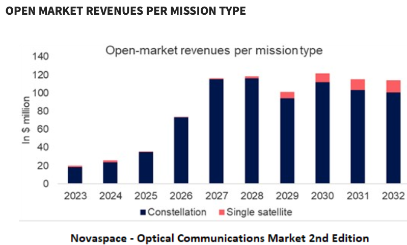 Novaspace anticipates that standardization will drive democratization, catalyzing the fast-paced technological evolution of optical communications and the market. Government-supported standardization efforts, such as the SDA program, have been conducted to drive down costs and enable larger adoption of laser communications technology, which for the moment, remains costly.