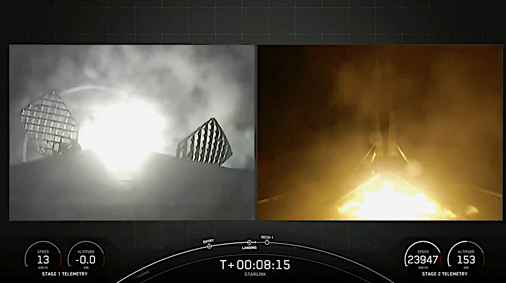 Stage separation took place with release of 23 Starlink small satellites two minutes and 34 seconds after launch.