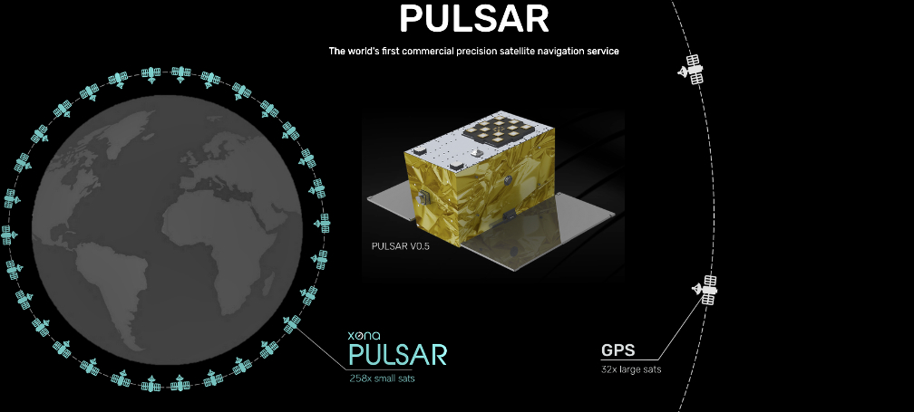 Xona is developing PULSAR™, a high-performance positioning, navigation, and timing (PNT) service built on a backbone of LEO small satellites. Xona’s patented high-powered smallsat signals will improve PNT resilience and accuracy by augmenting global navigation satellite systems (GNSS), such as GPS, while operating with an independent navigation and timing system architecture.
