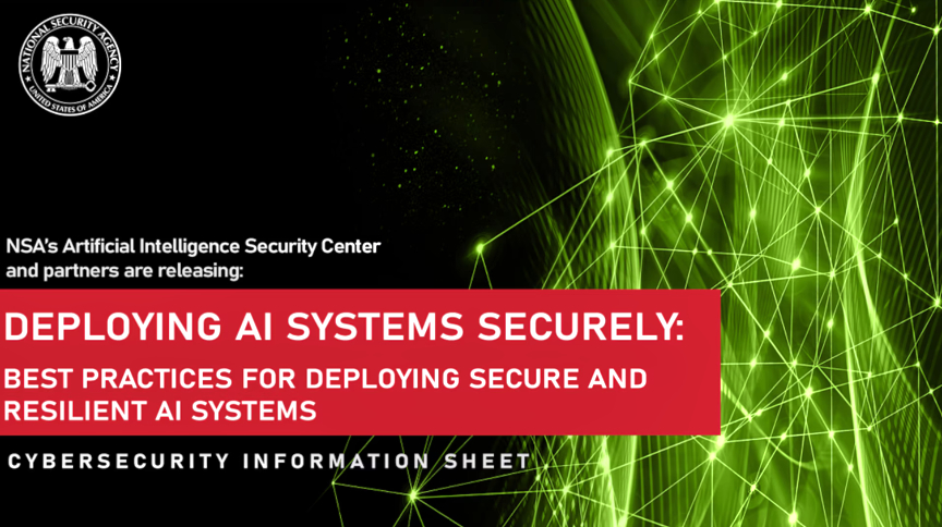 The National Security Agency (NSA) has released a Cybersecurity Information Sheet (CSI) — “Deploying AI Systems Securely: Best Practices for Deploying Secure and Resilient AI Systems.”