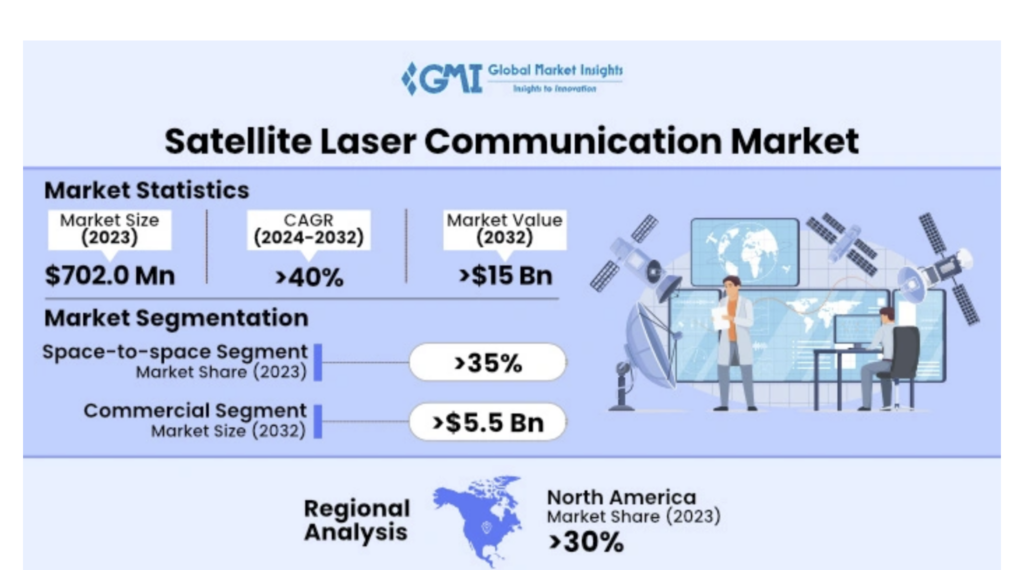 According to a new report from Global Market Insights, the Global Satellite Laser Communication Market will register a CAGR of 40% from 2024 to 2032, driven by the growing demand for high-speed data transmission and enhanced satellite network communication capabilities.