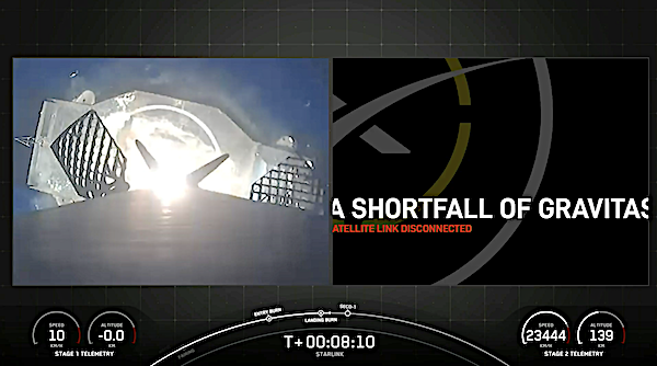 After stage one landing leg the video ended with Satellite Link Disconnected.