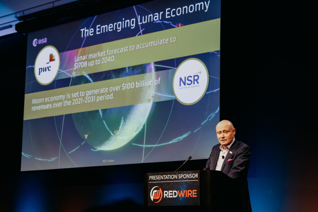 Clive Oates, Head of Region U.S., Canada, Australia and New Zealand for Surrey Satellite Tech. (SSTL). Mr Oates gave delegates a detailed report on the challenges of creating Lunar communications. He said the past decade had spurred considerable interest in global interest in returning to the Moon. There were reduced barriers to entry, launch costs had fallen and there are multiple commercial entities looking at the emerging Lunar economy, and an economy said to be worth hundreds of billions ($170bn to 2040).