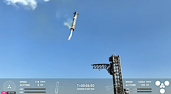 The booster known as Super Heavy, returned to Starbase seven minutes after launch and was caught by the launch tower’s arms making this the third successful capture for SpaceX.