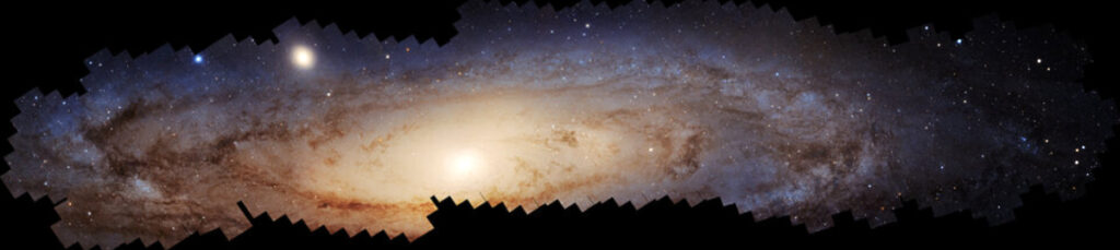 Beyond the Solar System, Hubble proved its continued importance in the rapidly growing field of research into exoplanets. It studied weather patterns in an exoplanet’s atmosphere, saw a new atmosphere being formed around a rocky exoplanet similar to Earth, and found a small exoplanet with water vapor in its atmosphere. Also completed in 2021 was a compilation of supernova host galaxies from 18 years of study, images that were used to measure the Hubble constant to its highest accuracy yet. This year too brought the culmination of the largest ever photomosaic of the Andromeda Galaxy, created from ten years of Hubble observations of our near neighbour.