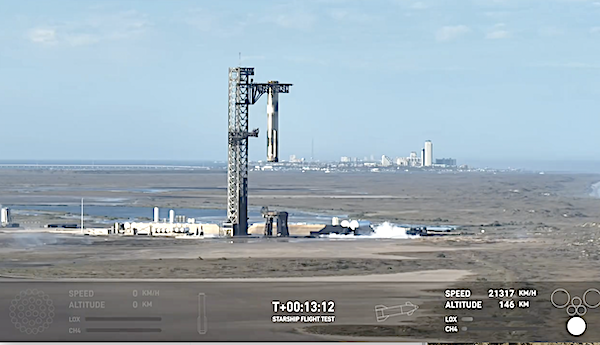 The booster on this flight test is also attempting several flight experiments to gather real-world performance data on future flight profiles and off-nominal scenarios. To maximize the safety of launch infrastructure at Starbase, the Super Heavy booster will attempt these experiments while on a trajectory to an offshore landing point in the Gulf of America and will not return to the launch site for catch.
