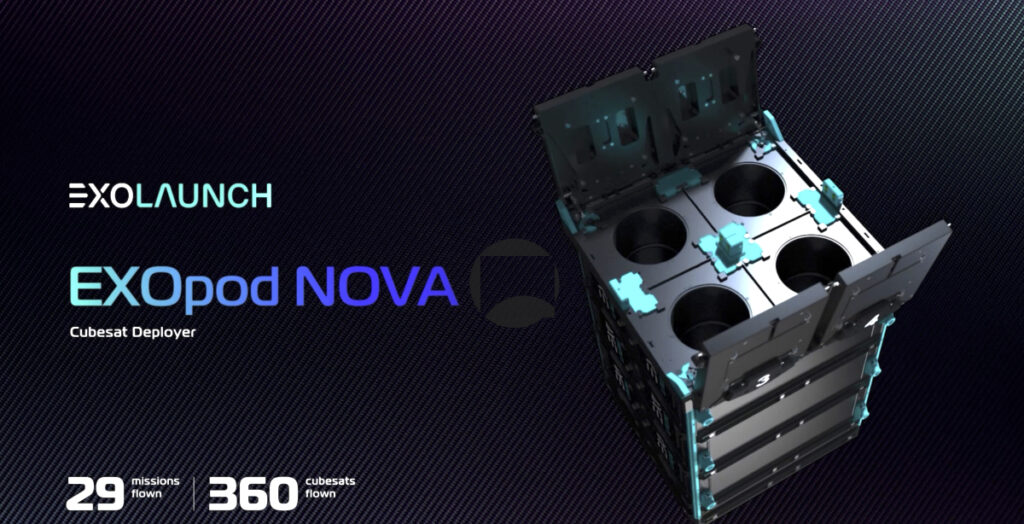 - EXOpod Nova advanced CubeSat deployers, supporting higher-mass and larger volume satellites with exceptional reliability