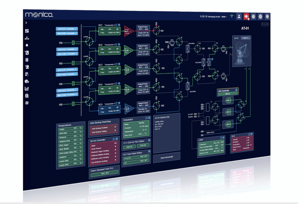 In response to market demands, Amphinicy has developed Monica: a modern and versatile monitoring and control solution for satellite ground segment operations. Monica acts as the intermediary between ground station operators and the various components within the ground station. It enables operators to monitor the health, status, and performance of different ground station subsystems in real time. The collected data is processed and presented through a user-friendly interface in Monica, using schemas and dashboards to deliver actionable insights. Remote configuration, diagnostics, and command execution of critical parameters are also supported.