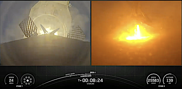 This was the fourth flight for the first stage booster supporting this mission, which has now launched four Starlink missions.