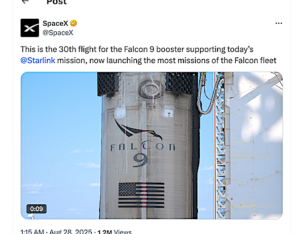 On Thursday, August 28 at 1:12 a.m. ET, Falcon 9 launched 28 Starlink smallsats to low-Earth orbit to join the Starlink constellation from Launch Complex 39A (LC-39A) at Kennedy Space Center in Florida. Photos captured by Satnews.