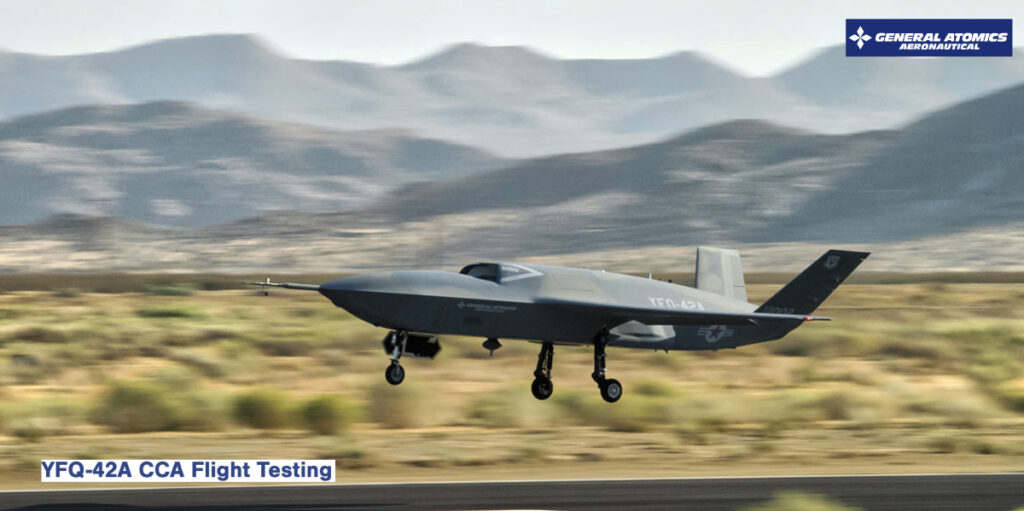GA-ASI built and flies the XQ-67A Off Board Sensing Station—its second uncrewed combat jet—for the U.S. Air Force Research Lab (AFRL). Just last month, GA-ASI announced the start of flight testing for its third, the new YFQ-42A Collaborative Combat Aircraft. The new unmanned fighter jet has been designed and developed by GA-ASI and is built for rapid production, in large quantities, at an affordable price.