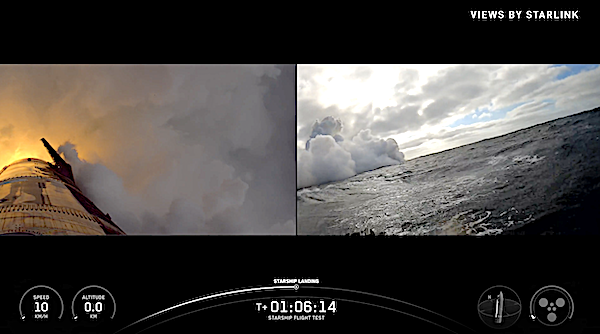 Starship re-entered the Earth’s atmosphere and was able to gather extensive data on the performance of its heatshield as it was intentionally stressed to test the limits of the vehicle’s capabilities. In the final minutes of flight, Starship performed a dynamic banking maneuver to mimic the trajectory that future missions returning to Starbase will fly. Starship then guided itself using its four flaps to the pre-planned splashdown zone in the Indian Ocean, successfully executing a landing flip, landing burn, and soft splashdown.