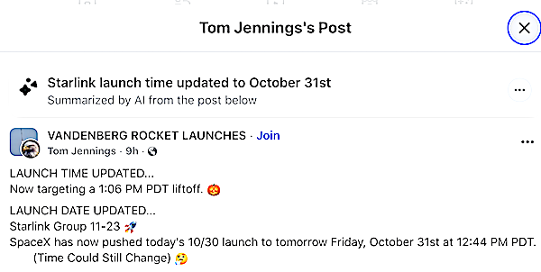 SpaceX’s Falcon 9 is now targeting the launch of 28 Starlink smallsats to low-Earth orbit from Space Launch Complex 4 East (SLC-4E) from Vandenberg Space Force Base in California on Friday, October 31, from 12:44 PM – 4:44 PM PDT. These smallsats will join the Starlink constellation.