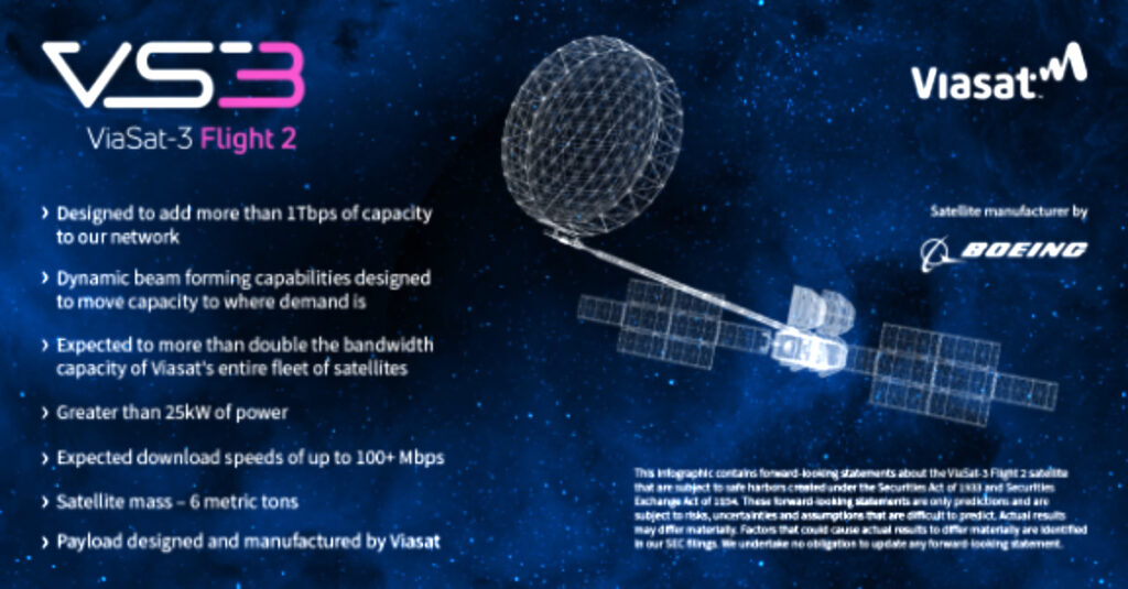 We’re excited about the next-generation technology and ultra-high-capacity capabilities of ViaSat-3 F2 and, most importantly, how that innovation supports delivery of reliable, high-performance services for customers,” said Gary Chase, Chief Financial Officer, Viasat. “The capacity and performance from ViaSat-3 F2 is expected to help us realize our plans for growth and support our financial objectives to increase earnings power and deliver growing free cash flow.”
