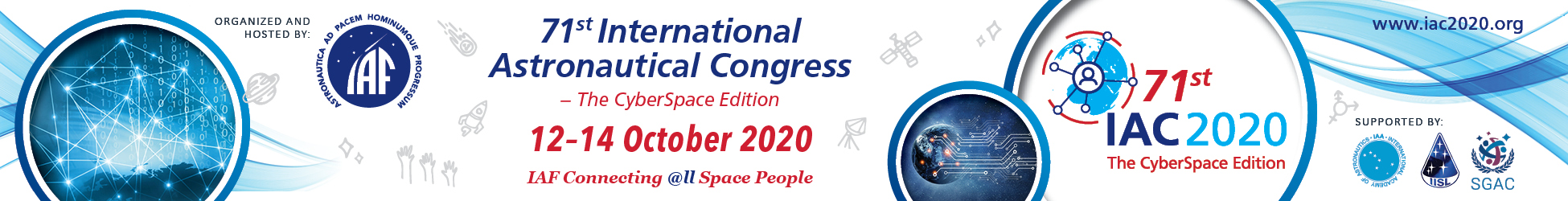 The International Astronautical Federation (IAF) is pleased to announce that the IAC 2020 will be hosted in a virtual format. The 71st International Astronautical Congress – The CyberSpace Edition will take place in your homes and offices around the world during 12 – 14 October 2020.