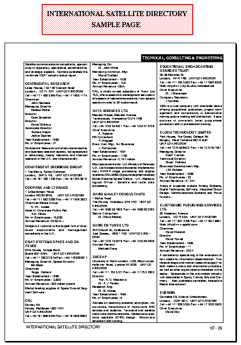 The Complete Guide To The Commercial The 2003 International Satellite Directory will be available in early 1993.