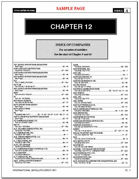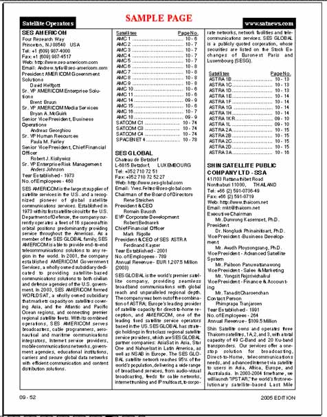 SATELLITE OPERATORS - System Operators including SES Americom, Intelsat, PanAmSat, Inmarsat, Intersputnik, Eutelsat, Arabsat, Palapa, European Space Agency and many others; Complete details on planned satellite systems with full details on their complex operations. Click here for sample page.